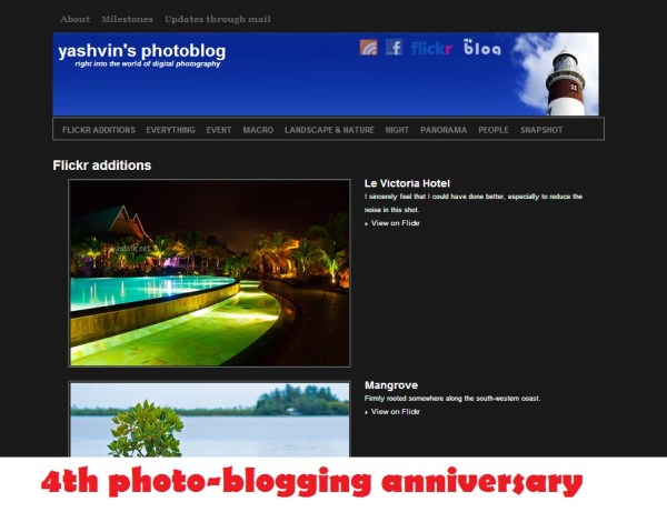 Exactly 4 years ago, I launched this photoblog. Since then, I posted nearly 400 images which gathered some hundreds of comments with a total of about 2000 ratings... Nice experience overall as it also allowed me to customize the current wordpress theme to suit my needs. But things changed a few weeks back when... Continue Reading →