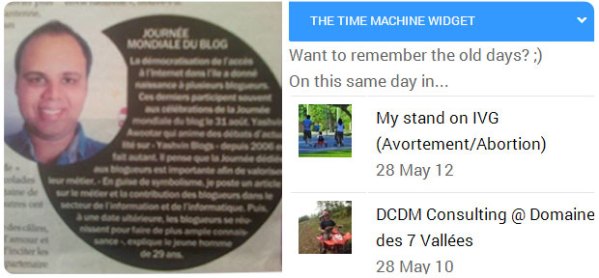 Paru dans l'édition du jour du DefiQuotidien : "Journée mondiale du blog La démocratisation de l’accès à l’Internet dans l’île a donné naissance à plusieurs blogueurs. Ces derniers participent souvent aux célébrations de la Journée mondiale du blog le 31 août. Yashvin Awootar qui anime des débats d’actualité sur « Yashvin Blogs » depuis 2006... Continue Reading →